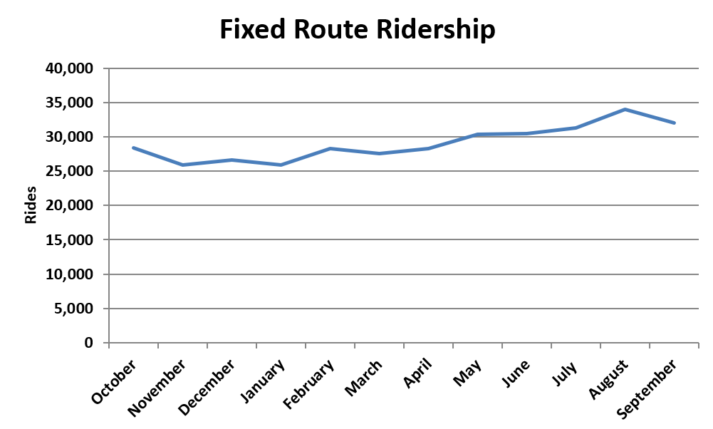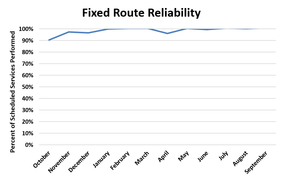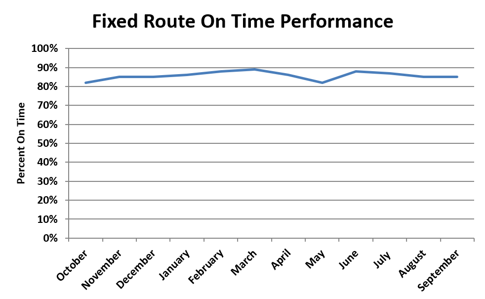 Fixed Route On Time Performance is not available for August and September, due to the transition from DoubleMap to Passio real-time tracking.